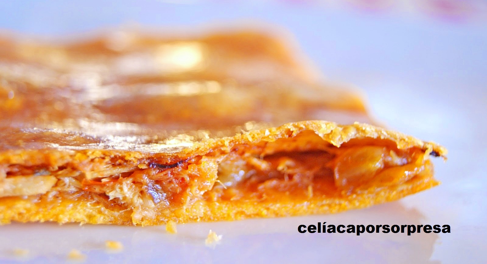 Qué gusto poder disfrutar de una empanada sin gluten. Quien quiera puede preparar la masa manualmente, como yo todavía no consigo que me salga bien, he optado por una masa ya preparada. Es verdad que se nota algo la diferencia, pero el resultado también es bueno.