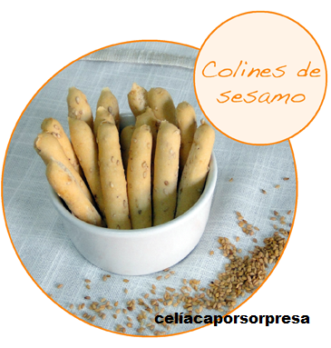 Un paquete de colines con sésamo. Sin gluten y sin leche y un paquete de galletas con chips de chocolate. Sin gluten.