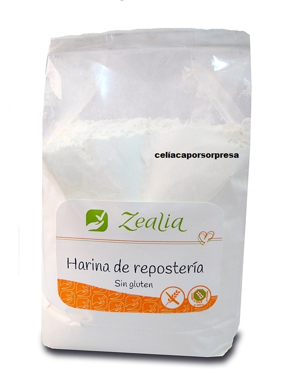 Un paquete de harina de repostería. Sin gluten, sin huevo y sin leche.