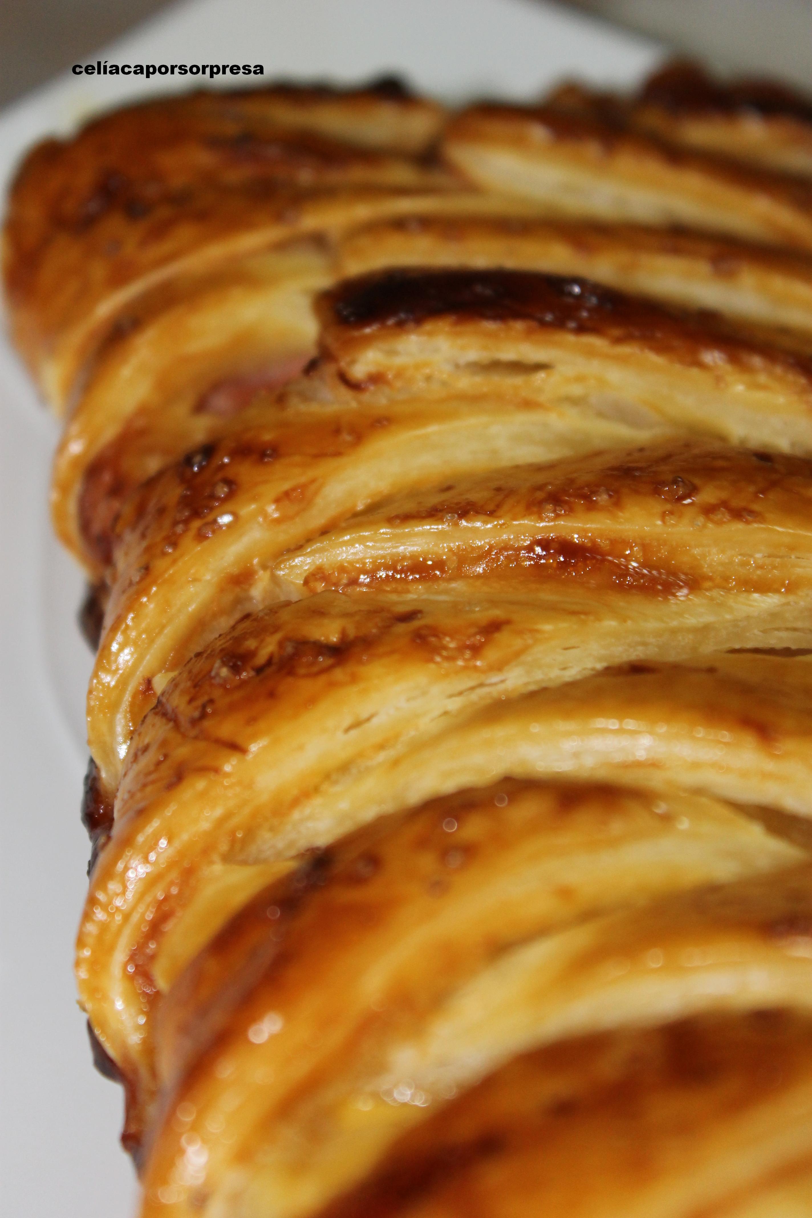 El otro día utilizamos la última masa de hojaldre que nos quedaba aún congelada, regalo de Adpan, para preparar esta deliciosa trenza de jamón york y queso.
