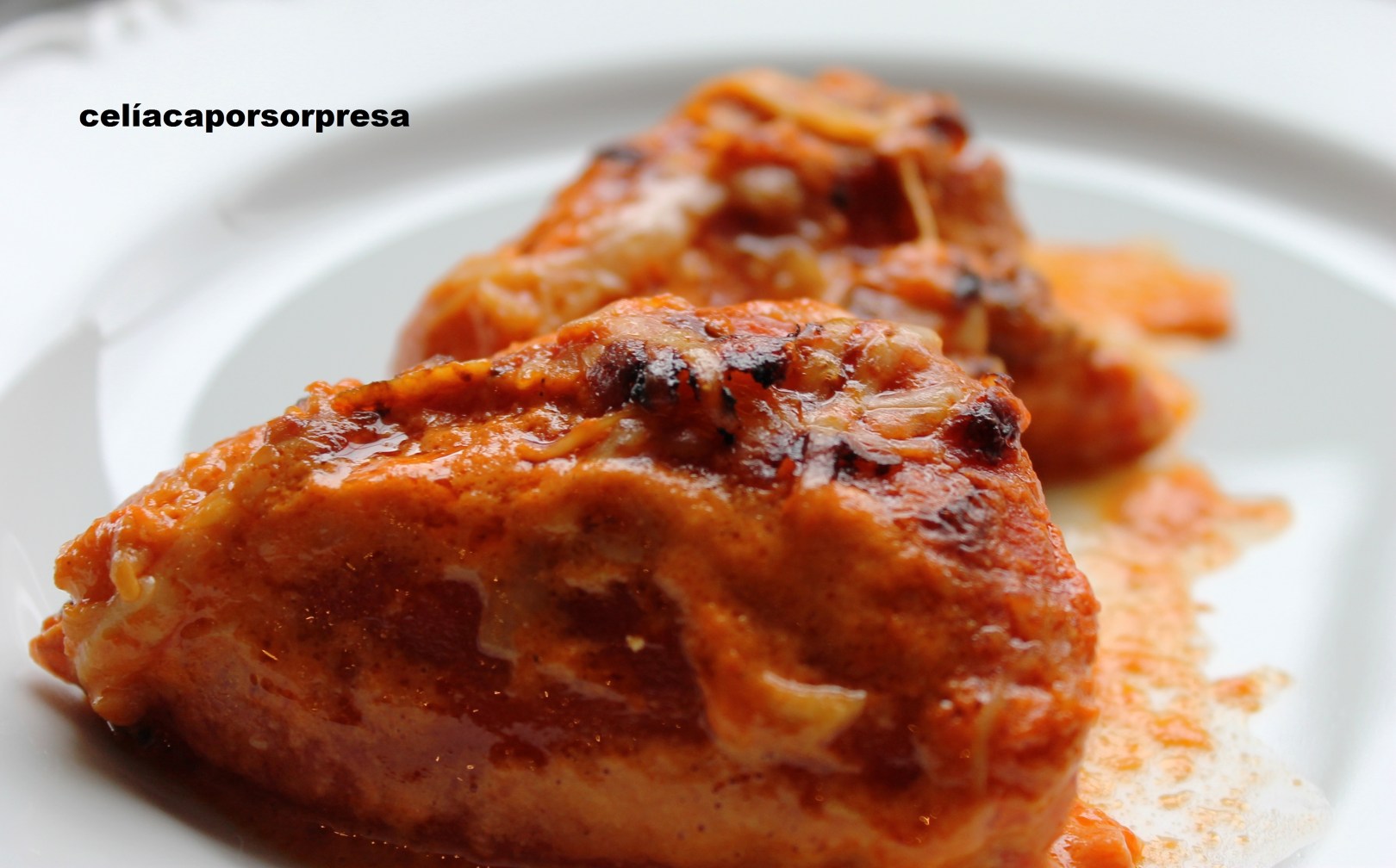 Preparamos la salsa batiendo la nata con 3 o 4 pimientos que hayamos reservado previamente.