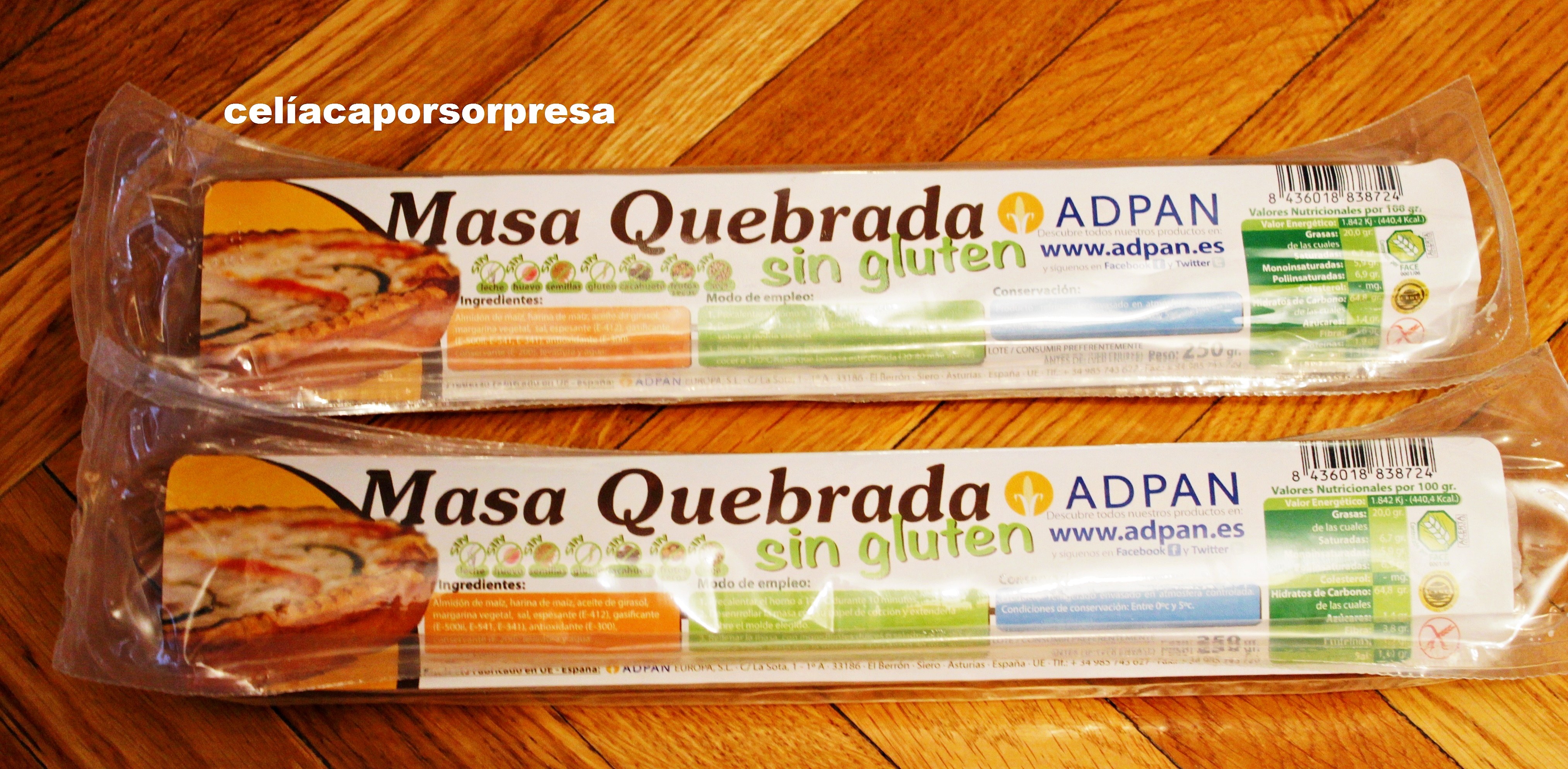 La receta la tenía pendiente desde hacía meses sacada del blog «Deseos sin gluten». Para prepararla utilizamos una de las masas quebradas que aún guardábamos congelada desde que la marca Adpan nos obsequió con sus productos.
