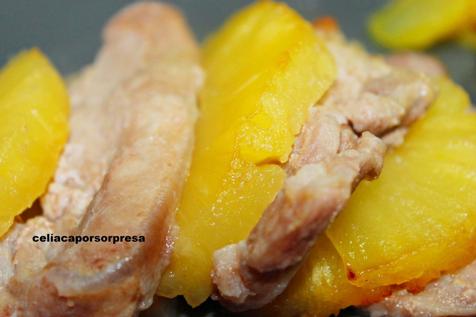 Si eres de los que te gusta la mezcla de sabores dulce y salado has de probar esta receta de cinta de lomo con piña.