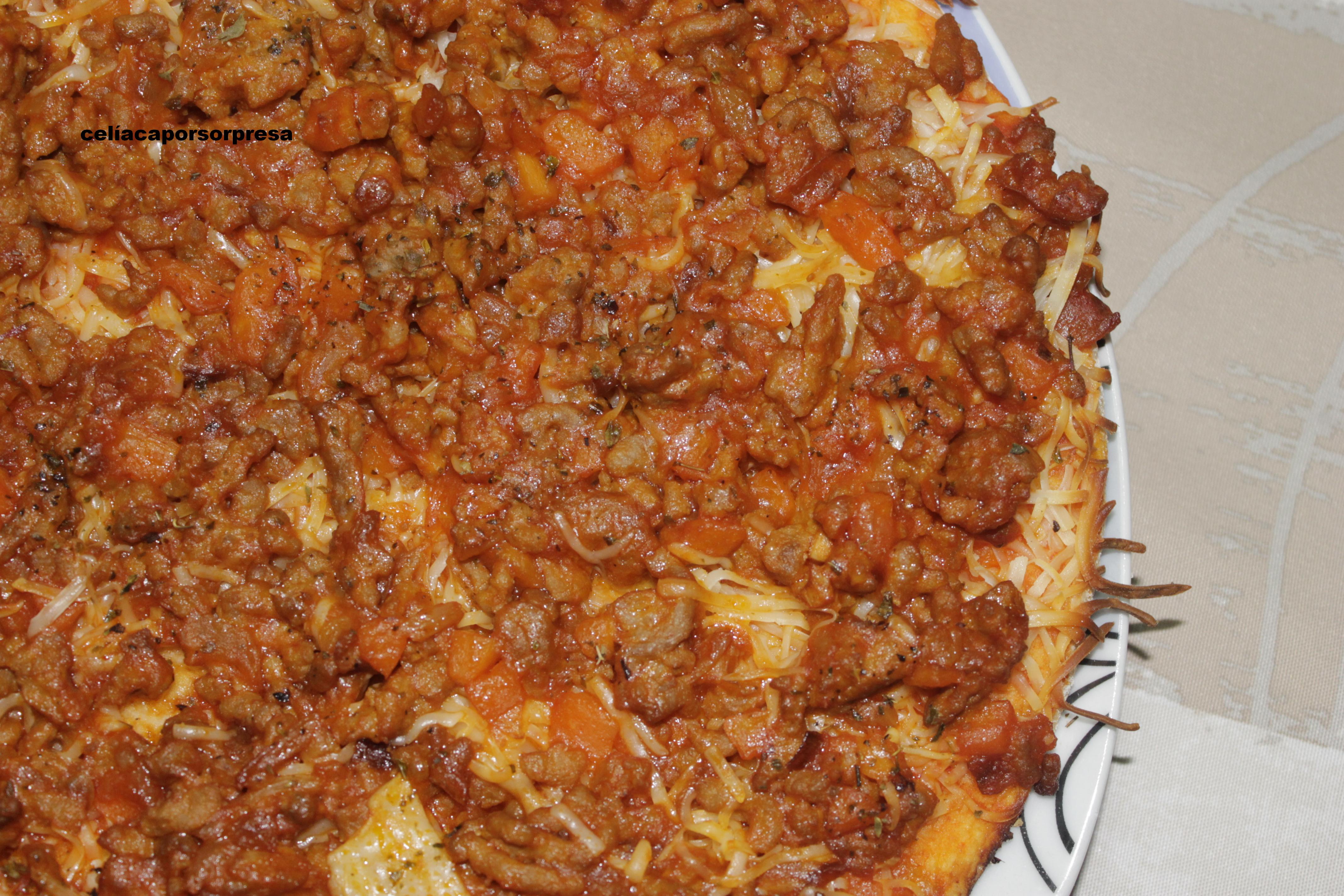 Hoy os traemos otra variedad de una deliciosa pizza, pizza boloñesa con chistorra. ¡Para chuparse los dedos!