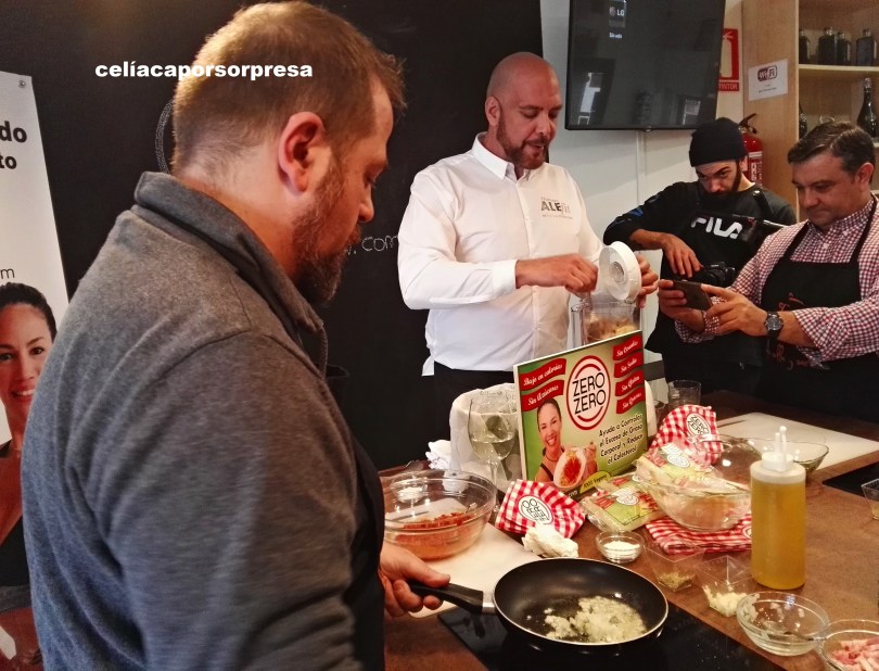Para saber cómo se elabora ZERO ZERO PASTA nos repartimos en varias cocinas y fuimos preparando paso por paso tres tipos de salsas para acompañar los espaguetis ZERO ZERO.