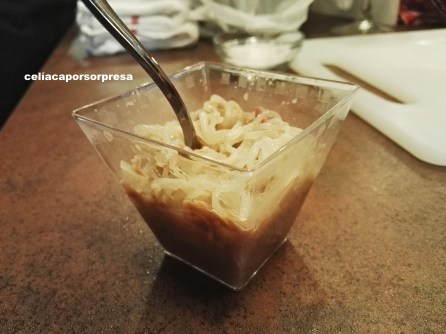 Una vez dentro, pude desvelar el secreto y comprobar que el producto era ZERO ZERO, un tipo de pasta sin gluten, sin lactosa, sin azúcar, sin sodio y que no engorda. Yo ya conocía el producto y es que hace 2 años tuve la oportunidad de probarlo pero de la mano de otra empresa que también la comercializa en España, pero por ser educada y discreta no lo dije y me dejé llevar por todas las explicaciones para disfrutar al máximo de la experiencia y aprender cosas nuevas.