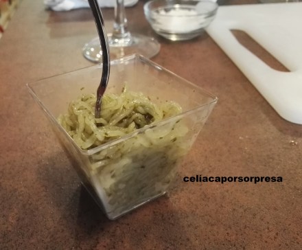 Ya la última opción que preparamos fue una salsa pesto que ya tenían elaborada con piñones y albahaca.