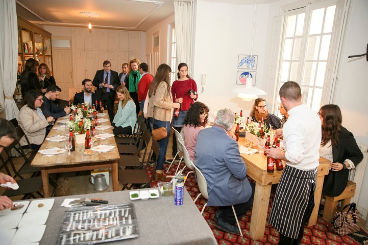Con el lema «Todo el sabor de CRUZCAMPO, ahora SIN GLUTEN» te topabas nada más entrar en el piso del artista. Allí diferentes bloggers, representantes de la FACE y responsables de la agencia organizadora del evento hablaban mientras todos ellos probaban la nueva cerveza CRUZCAMPO SIN GLUTEN.