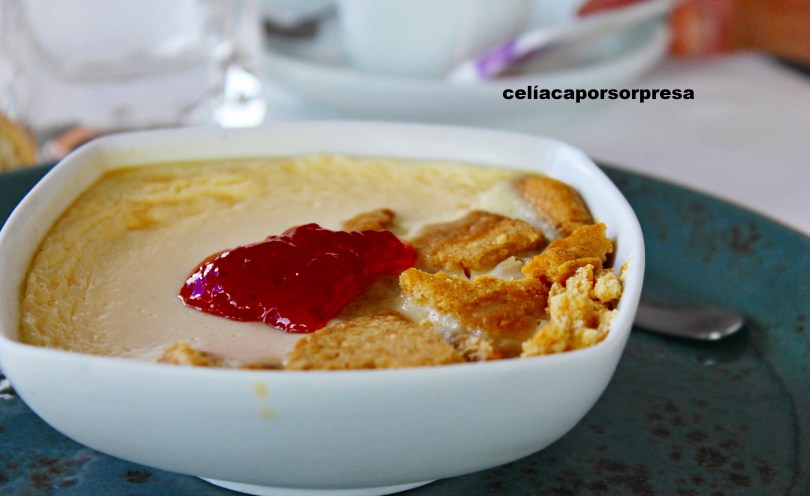De postre me ofrecieron su tarta de queso apta que pusieron con galleta sin gluten por encima.