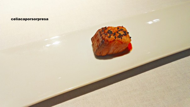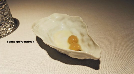 LÚA tiene dos espacios bien diferenciados, su planta de arriba en la que aprovechar su barra y poder probar sus tapas de calidad y una planta inferior con mesas amplias y espaciosas para disfrutar de su menú degustación. Esto segundo fue lo que nosotros hicimos, previa reserva anticipada y avisando de mi condición de celíaca.