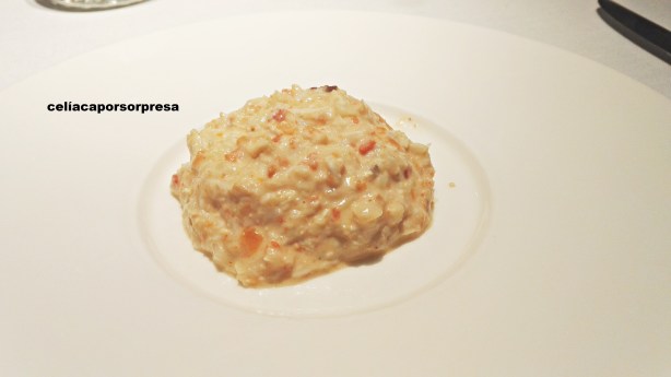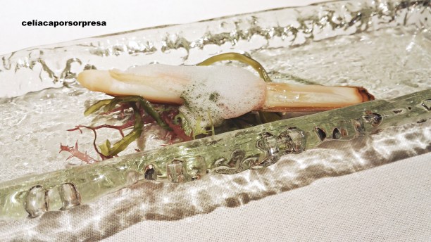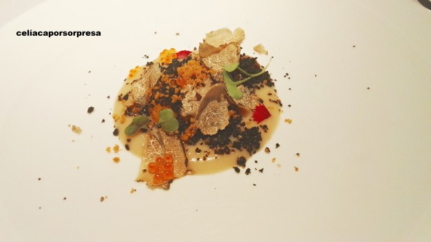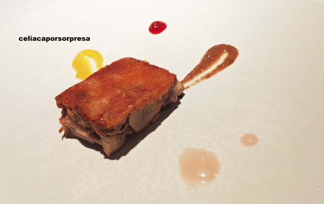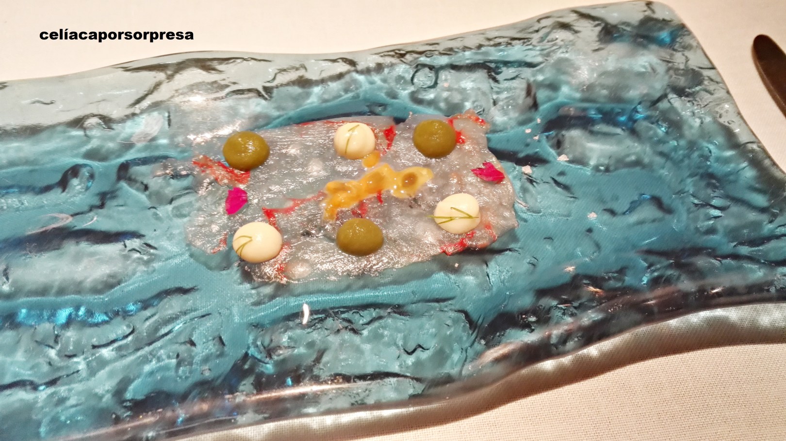 Aquí os enseño mis platos (tres aperitivos, dos entrantes, dos platos principales, prepostre y postre) tres de los cuales fueron diferentes del menú normal por llevar gluten y que me modificaron sin problemas.