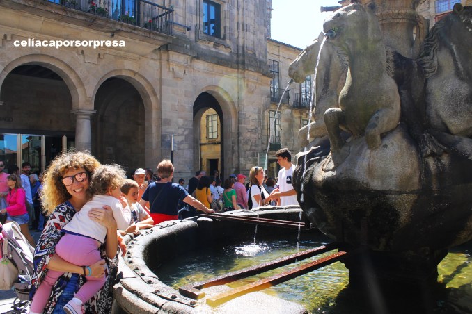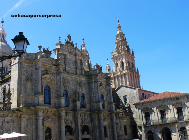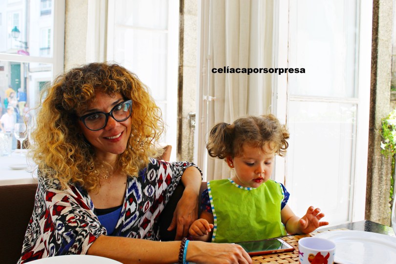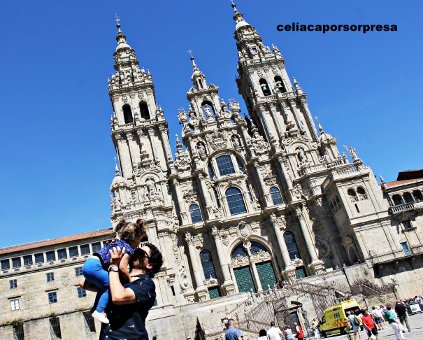 A Santiago fuimos a pasar el día, paseamos por sus preciosas calles, fuimos a su mercado de Abastos, nos tumbamos a descansar en la maravillosa plaza del Obradoiro mientras Claudia gritaba y bailaba con la llegada de cada grupo nuevo de peregrinos, entramos en la Catedral y no quiero dejar de citar a esa familia encantadora de celiaquitos del Norte que nos reconocieron en la oficina de información y turismo y con la que charlamos e intercambiamos impresiones. Ellos sabrán quienes son, cuando lean esto 😉