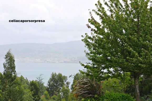 Fuimos en taxi y tras varios minutos subiendo cuestas rodeadas de árboles, llegamos allí, y es que el local se encuentra en lo alto de una colina, así que tiene unas vistas inmejorables de la Ría de Pontevedra.