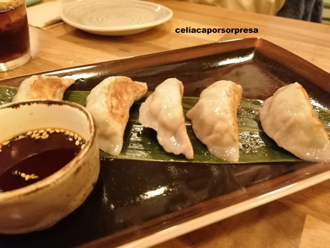 Decidimos probar las goyzas, el takoyaki, el torinokaraage, ramen, katsudon, potetokorokke y de postre matchabrownie y la tarta de queso sin queso.