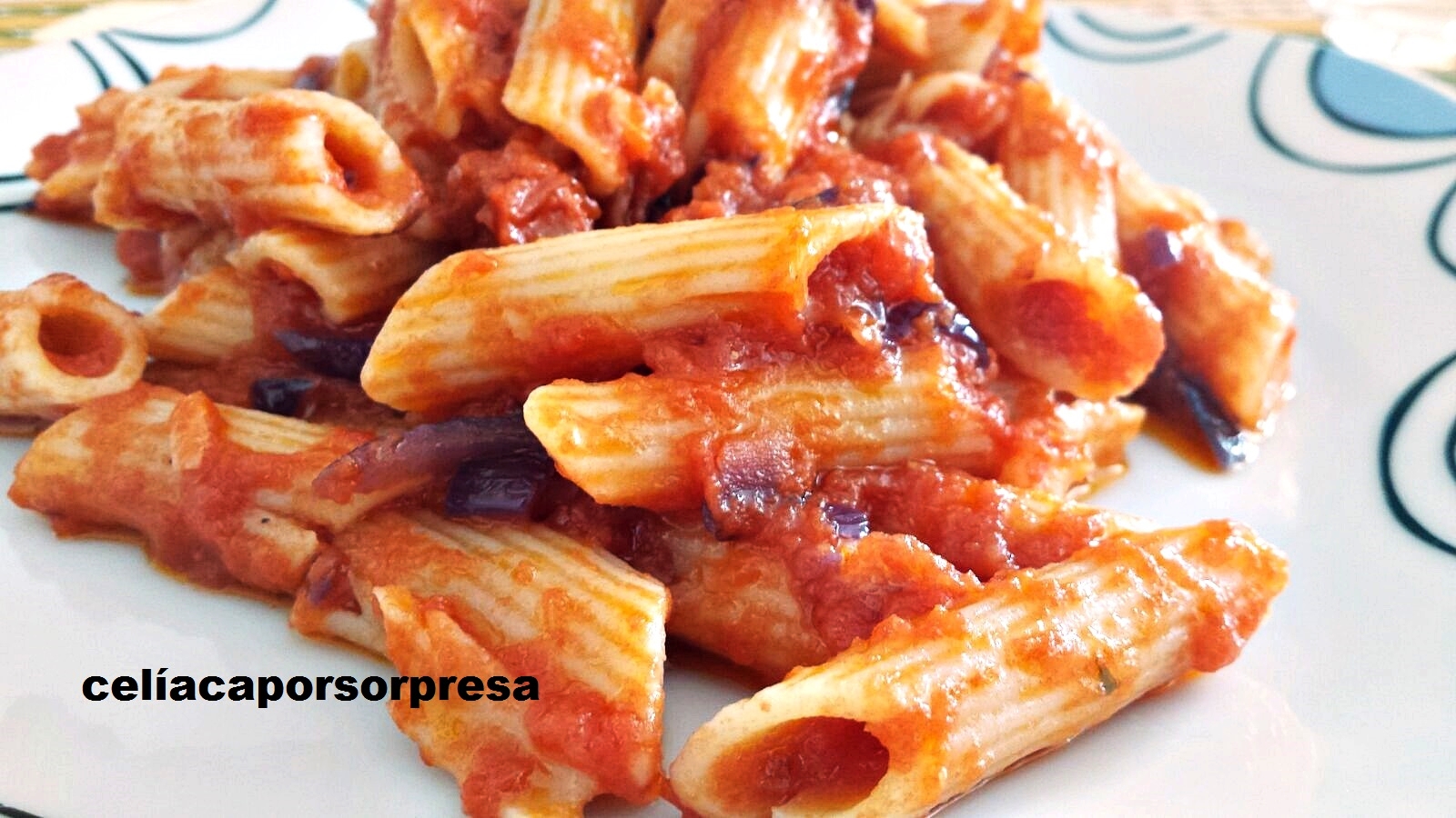 plumas-con-salsa-de-cebolla-morada-y-chorizo-sin-gluten