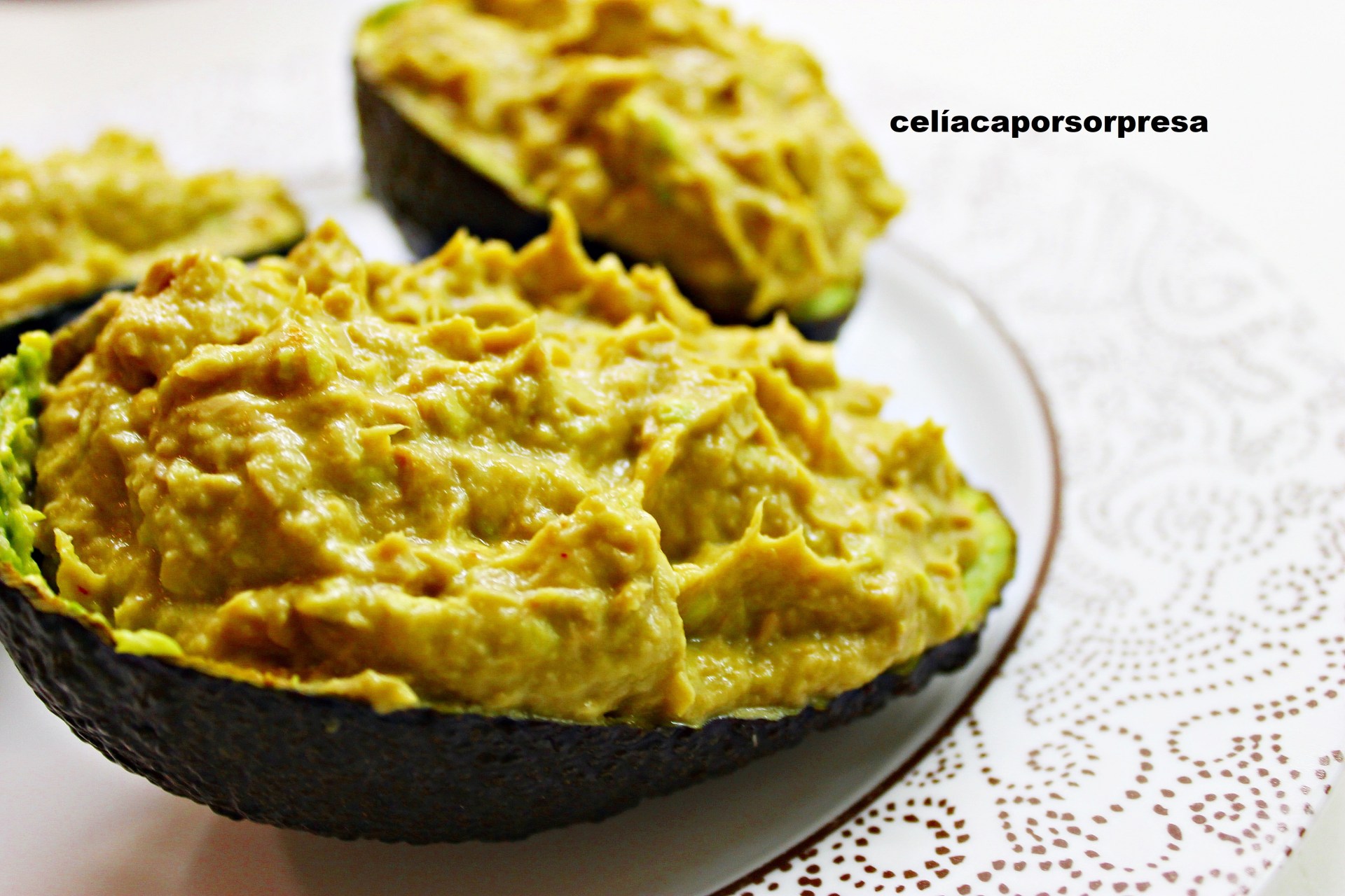 ¿Un secreto…? a Claudia le encanta dippear estos aguacates rellenos de atún con picos sin gluten.