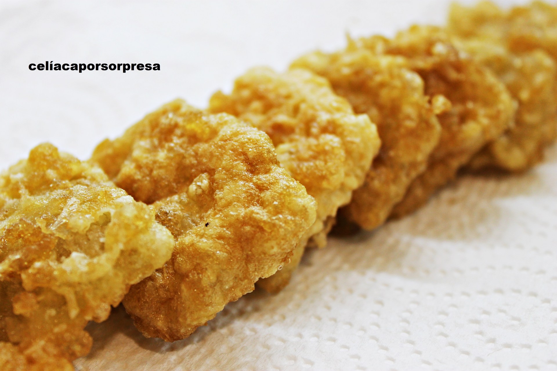 En una sartén con abundante aceite de oliva freímos las pencas rebozadas. Procuramos hacerlo con el fuego no demasiado fuerte, para que no se nos quemen demasiado. Tienen que quedar doraditas.
